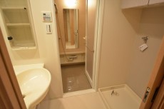 サニタリールームの奥は浴室乾燥機付バスルームです。