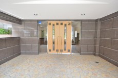 真中がメインエントランス、左が駐車場、右が裏手の階段へとつながっています。