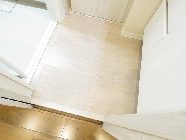 白基調の明るい玄関ホール。インターホンは来訪者の顔が確認できるTVモニター付きです。