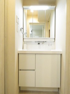 洗面化粧台は鏡の裏、引き出しと収納たっぷり。ゴチャゴチャ散らかりがちな洗面まわりもスッキリ片付きそうです。