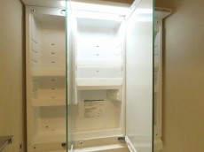 2つ並んだ収納棚は片方に扉がついているので、生活感のでがちな日用品のストックなども目につかないところへ保管しておけます。