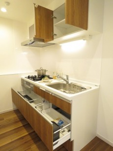 浄水機能付き水栓、3口コンロ、人造大理石トップ、収納たっぷりとスペックも◎。