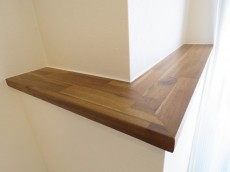 コンロ側の壁面にカウンターがあり、調味料なども並べておけます。