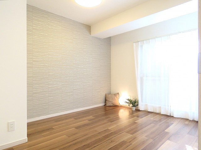 洋室は約5.5帖。壁面の一部にはアクセントクロスが貼られており、気品のある雰囲気。ステキです。