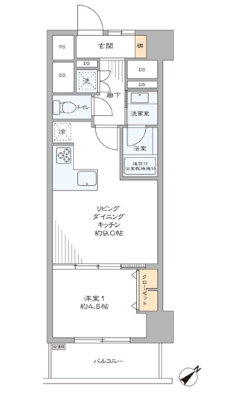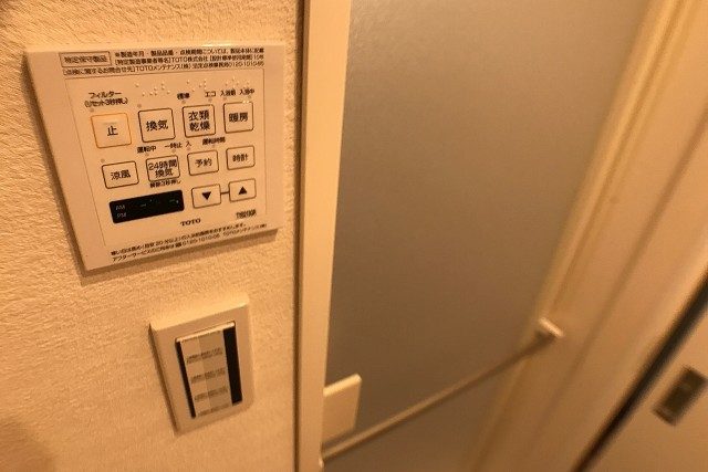 浴室換気乾燥機能付き。お天気が悪い日でもお洗濯物が乾かせて助かります。