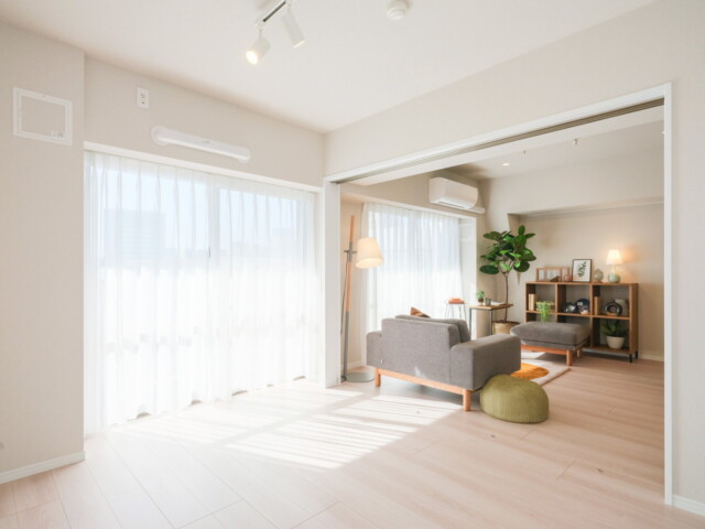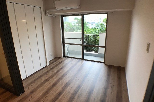 約5.8帖の洋室2はLDKと同じ南西向きバルコニーに面した明るいお部屋です。LDKとは引き込み式の引き戸で仕切られているので、全開にすればLDKとつなげて使うことも可能。