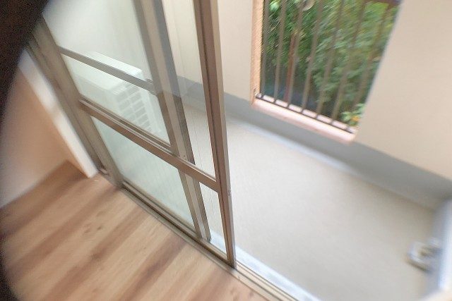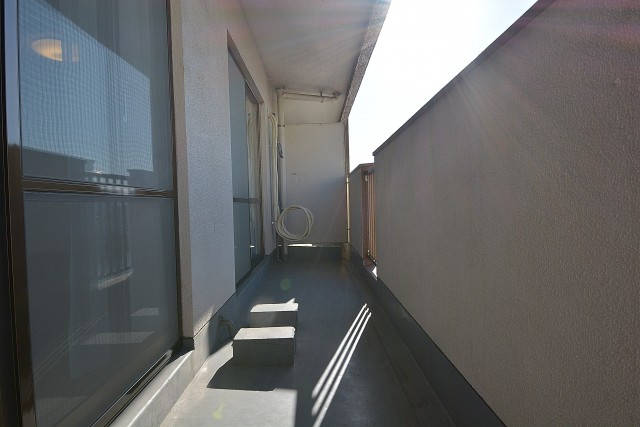 最後にバルコニーに出てみます。約8.19㎡、南西向きで陽当たりにも恵まれています。