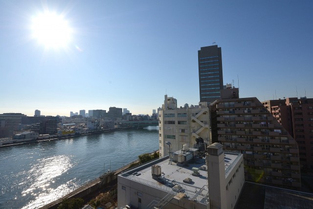それでは最後にバルコニーからの眺望をご紹介・・・隅田川を一望できる素晴らしい眺めです! 以前川沿いに住んでいたことがありますが、季節や天気、時間によって表情が変わる川の流れを眺めてるのってほんと癒されるんですよね。