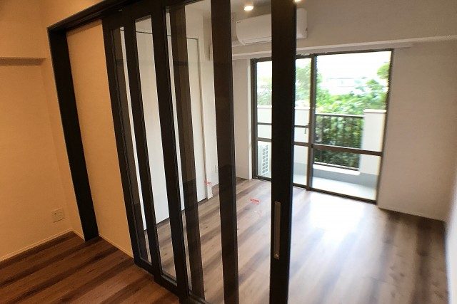 2部屋目はリビングに隣接しており、3枚の可動式の扉で区切られています。