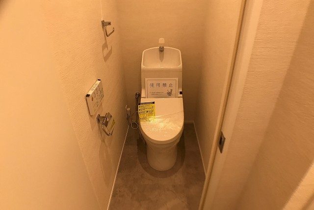 【トイレ:温水洗浄機能一体型・吊り戸棚付き】