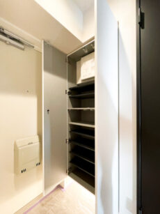 形の都合上、全てを開け放つことはできませんが収納も豊富です。