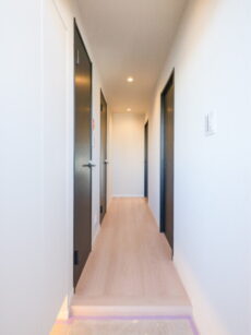 玄関の照明は人感センサー付き。自動でライトのON・OFFをしてくれるので両手が塞がっていても大丈夫、暗い中手探りでスイッチを探す必要もありません。いつでも明るい玄関が迎えてくれるのって嬉しいですよね。シューズボックスは収納力のあるトールタイプ!