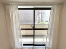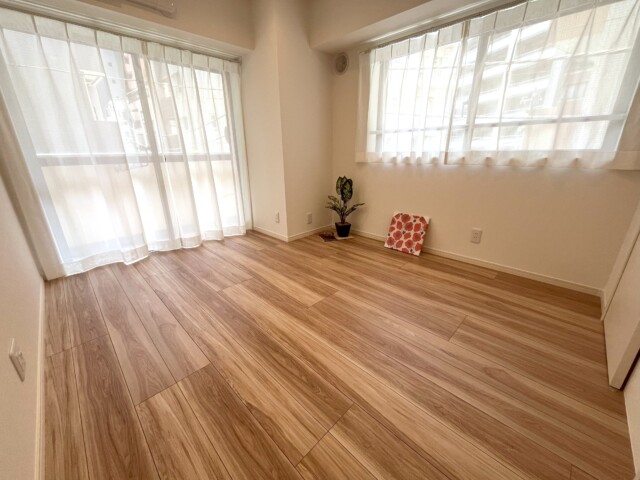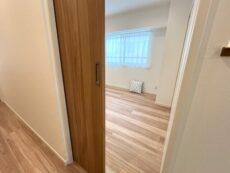 こちらは約6.5帖の洋室。リビングの隣、バルコニーに面した明るいお部屋です。ベッドも二つくらいなら楽に入りますよ。
