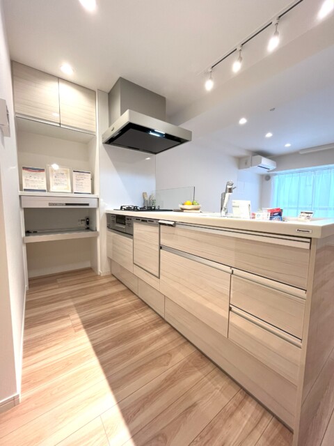 ライトトーンの木目が明るい気分にさせてくれるキッチン◎毎日の料理が楽しくなりそうです◎
