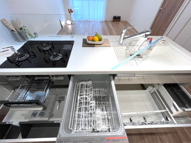 オープンキッチンだから、リビングやダイニングと自然とつながっていて、家族とのコミュニケーションもしやすそうです◎