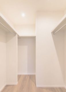 収納はハンガーポールがコの字型に設置されたウォークインクローゼット。約1.7帖もあって収納力抜群です。