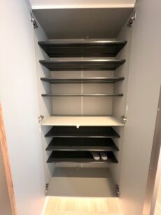 こんなに靴がたくさん置けるなんて靴好きにはたまらないですね!季節ごと・家族ごとにしっかり分けられて便利です。