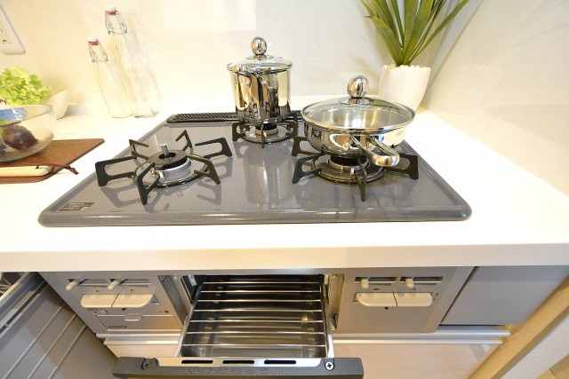 お料理好きには嬉しいグリル付き3口コンロ♪