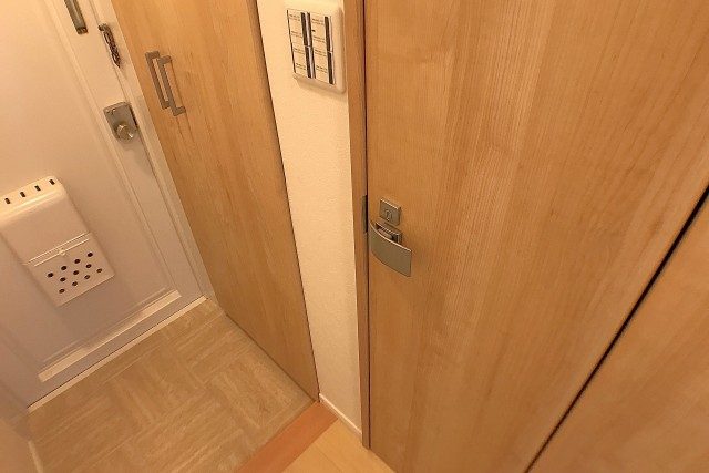 ドア横にはモニター付きインターホンが設置されていて、お部屋の中から訪問者を確認することが出来ます。映像を見てから応対するかを決められるのは安心ですね。