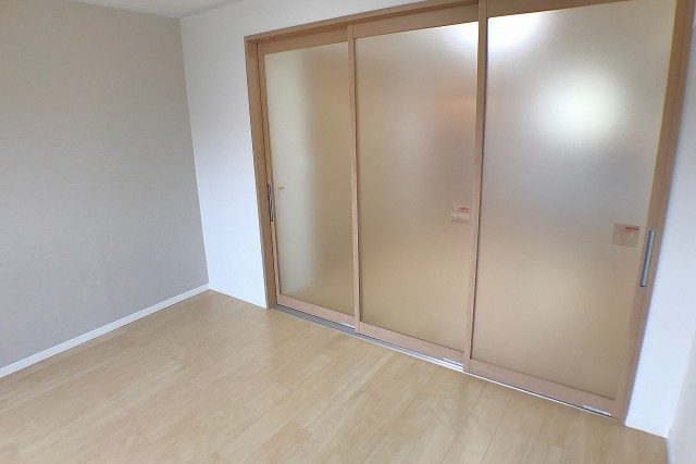 こちらは約4.2帖の洋室。柱などの出っ張りが無いきれいな形のお部屋です。更に、入口が引き戸なのでデッドスペースも出来ず、お部屋のスペースを無駄なく使うことも出来ますよ。