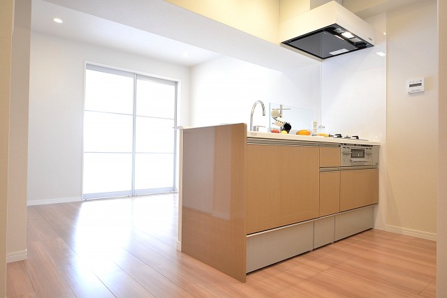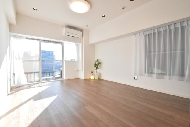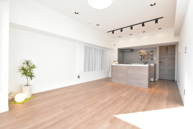 こちらは約14.5帖のリビング・ダイニング・キッチン。南東向きの窓からの光が眩しいお部屋です。二面採光なので風通しも良さそうですね。