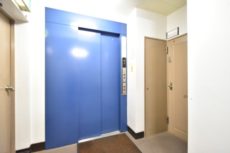 エレベーターを6階で降り、内廊下を進みます。メーターボックスがドアと同じ色なので、扉がたくさんあるように見えますね^^;