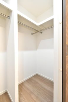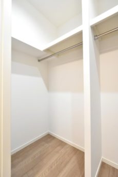 収納はウォークインクローゼット!!L字型にハンガーポールが設置された大きな収納です。約1.5帖もあるそうですよ。