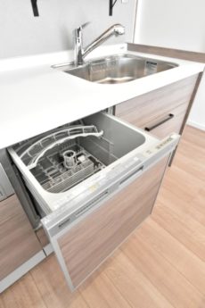 調理台の下には食器洗浄乾燥機とスライドキャビネット。食洗機!!この季節に食器洗いから解放されるなんて夢のよう(^^)余った時間をどう使おうか、今から妄想が止まりません(笑)引き出しタイプのスライドキャビネットは出し入れがし易く、たくさん詰めても中身の確認が楽なのがポイントです。