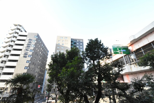 前の道路が広いので開放感のあるまずまずの眺めになっています。3階くらいだと街路樹の緑が近くていいですよね。お部屋の中から見た時も緑が入ると雰囲気が全然違います♬ 大きな道路が近い割には静かな気もしますが、朝早いからかもしれませんね。ただ、もっとうるさくなったとしても、インナーサッシがあるのでご安心を(^^)v