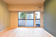 南西向きバルコニーに面した明るいお部屋です。前には大きめの道路が通っていますが、窓にはインナーサッシが設置されているので防音対策もバッチリ!遮熱性が高く冷暖房費が節約出来たり、結露が防げたりと一石何鳥にもなっています。