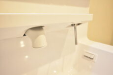 リンナイ製追い焚き機能付きのユニットバスは「自動」ボタンひとつでお風呂を沸かすことが出来ます。そのまま保温もしてくれるのでいつでも温かいお風呂に入れますよ。