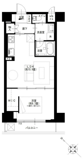 こちらは約10.9帖のリビング・ダイニング・キッチン+約6.3帖の洋室。