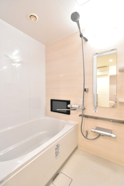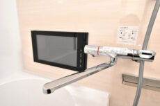 なんとテレビ付!お休みの日にテレビを見ながらビールを片手に半身浴なんて、ちょっと憧れます(笑)追い焚き機能はありませんが、最近の浴槽は保温機能が優れていますし、おひとり暮らしなら問題はなさそうです。ただし、忘れて溢れさせるのだけにはご注意くださいね。今はスマホのタイマーやアラームなど便利な機能が簡単に使えるので大丈夫だと思いますが。