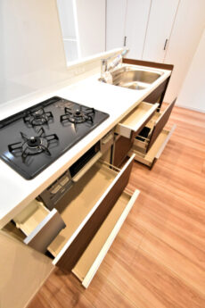 ガスコンロは3口あるし、収納もたっぷりあるので、お鍋・フライパンをフル活用して、新しいメニューにトライしてくださいね♪