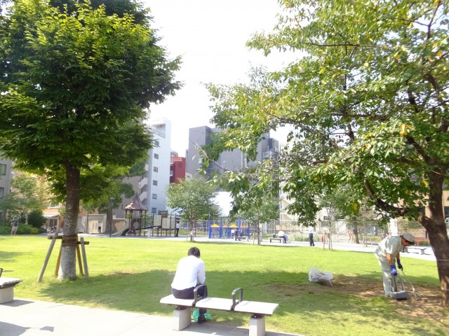 マンションの近くには、箱崎公園がありました。緑が多くとてもキレイなので、近隣にお住まいの方と近くで働くサラリーマン、OLさんの憩いの場になっていました。遊具もいろいろ設置されていますので、小さなお子さんがいらっしゃる方は、お子さんの遊び場所としてもお使い頂けますね(^_-)-☆