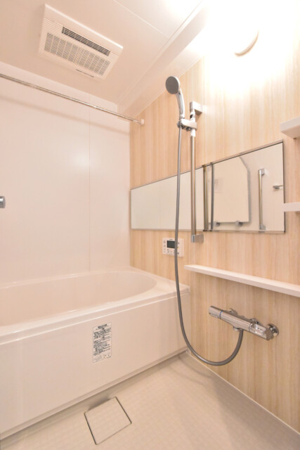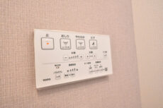 浴室換気乾燥機能付き。換気だけでなく暖房や涼風などで快適なバスタイムをサポートしてくれます。もちろん、雨の日のお洗濯物乾燥もお任せください!