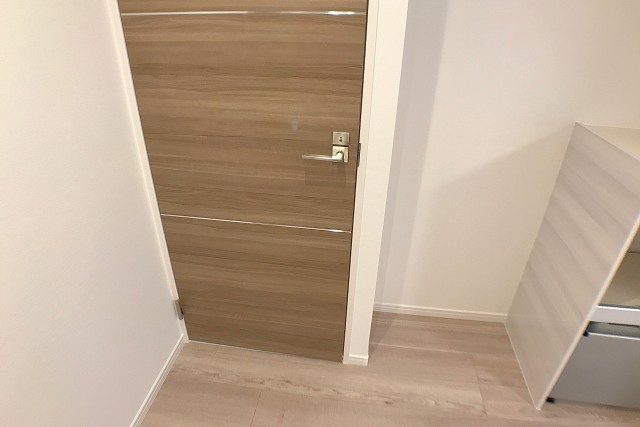 玄関扉の内側も表側と同じくブラウンで木目調になっています。