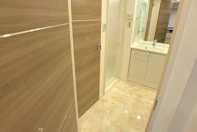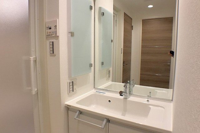 今度はダイニングキッチンから廊下側へ戻って洗面室を見ていきましょう。