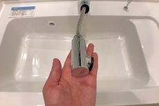 水栓は浄水機能付き。さらにホースを伸ばせばシャワーとしても利用可能です。シンクのお掃除も隅々まで簡単にできますよ~。これならお掃除も習慣になりそうです。