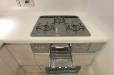 3口もあるコンロはもちろんですが、グリルが付いているのは嬉しいですね!!