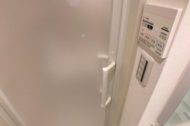 バスルームの扉の横には浴室換気乾燥機の操作パネルがついています。