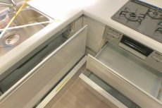 キッチンは吊戸棚にスライド収納と収納スペースが豊富。