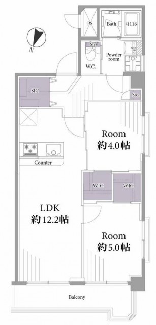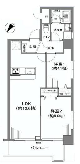 2部屋ある洋室のうち、1部屋はLDKに隣接しています。