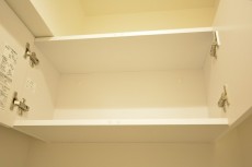 上の棚にはペーパーのストックや掃除用具をどうぞ。