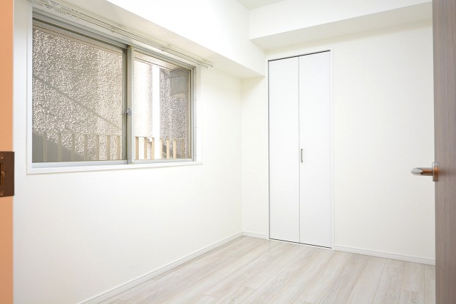 洋室約4.1帖。窓の外は隣の建物の壁。外からの人目が気になることはなさそうです。