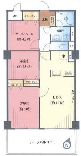 LDKとベッドルームから17平米の広々としたルーフバルコニーへ出ることができます。