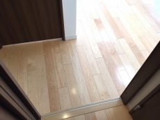 さっそくお部屋を見ていきましょう♪♪玄関の扉を開けると、綺麗にリフォームされています。シックな雰囲気のフロアタイルがキッチンに敷き詰められています。