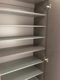背の高いクローゼットがあり、可動棚で高さ調節可能です。