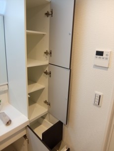 洗面台下の収納に加え、右手にはリネン庫も設置されておりいて収納力抜群!
