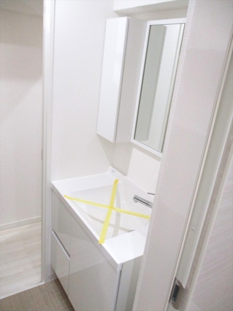 洗面台は新規交換してあり、鏡の裏には収納スペースが設けてあります。